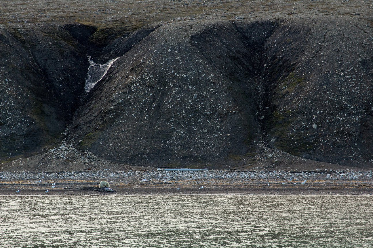 W pewnym momencie następuje poruszenie, gdyż na brzegu zauważono niedźwiedzia polarnego, objadającego się truchłem wieloryba.